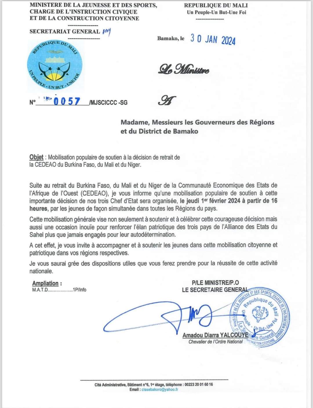 Ordre de mobilisationi cosmétique aprés retrait de la Cedeao