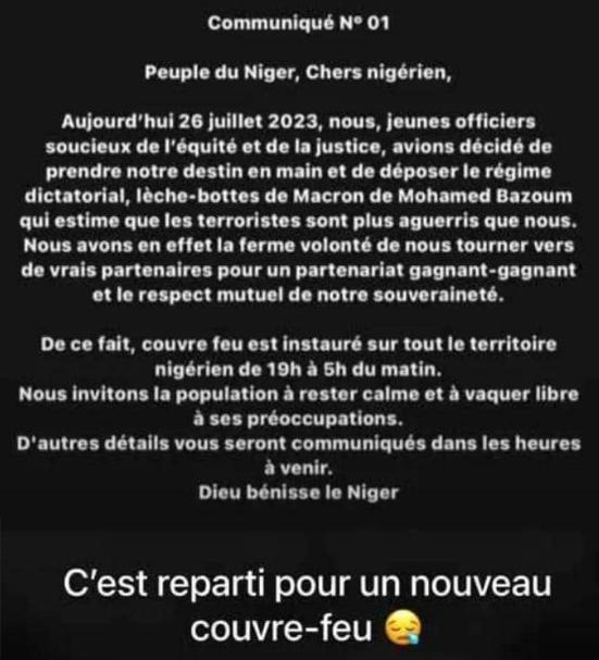 DERNIERE MINUTE : UN COMMUNIQUÉ N°1 vient d’être publié à Niamey